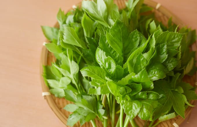「明日葉(アシタバ)」みくら島の代表的な食べ物といえば明日葉。豊かな森が育むみくら島の明日葉は、クセが少なく、みずみずしくやわらかいのが特徴。島民はみんな自分で摘んで料理し、食卓に並びます。抗菌作用があり、ビタミンやミネラルも豊富な明日葉があるので、比較的農作物が採れにくい冬場でも安心です。