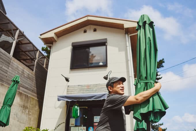 元々はイルカ好きで御蔵島ファンでした。奥さんと年1回くらいのペースで来ていた頃、「お土産屋さんがあったらいいね」と話していて。それで思いきって「僕らがお店を作ってもいいですか?」と島の方に相談したところ、とても喜んでくれました。店舗が完成した際には、見ず知らずの僕らのために朝早くから起きて、餅まきまでしてくれました。